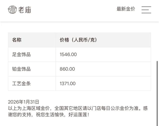 受此影响,部分国内品牌金饰价格也大幅下跌,克价单日跌超百元。中新经纬31日查询发现,周生生足金饰品报1543元/克,较前一日此时跌119元;老凤祥足金饰品报1498元/克,单日跌170元;老庙黄金足金饰品报1546元/克,较前一日此时跌144元。
