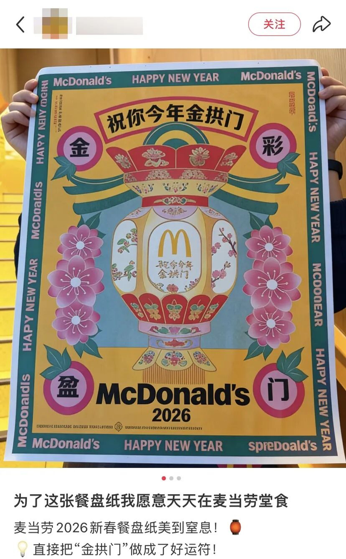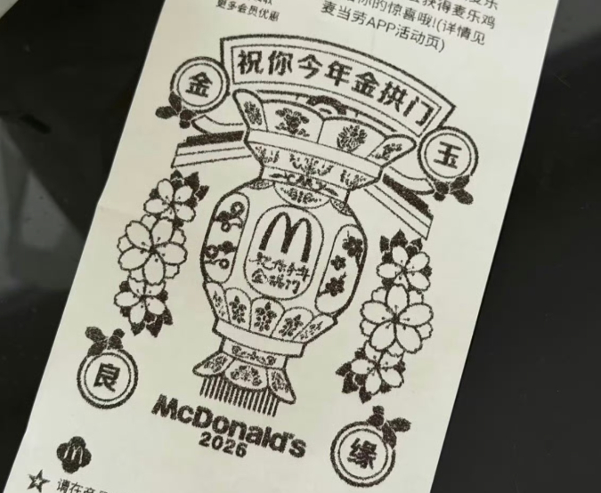 记者搜索发现,1月28日,麦当劳官方推文介绍,今年春节,邀请4位非遗灯彩传承人共同创作了北京宫灯、佛山彩灯、秦淮荷花灯、汪满田鱼灯4款承载新年祝愿的主题灯彩,并且把小票升级为“一灯一愿”特别版本。
