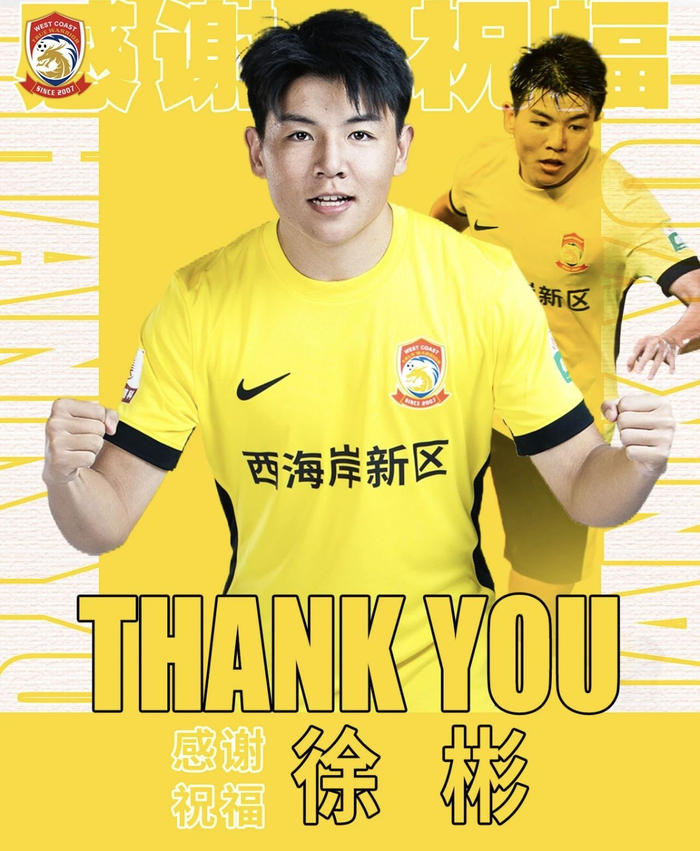 2025年1月,徐彬以自由身加盟俱乐部,迅速在中超赛场崭露锋芒。2025赛季,他代表西海岸队出战30场,其中首发23场,贡献3次助攻,成为球队中场不可或缺的力量,助力球队斩获中超第九名的佳绩。赛场上他以清晰的大局观串联攻防,凭借扎实的技术功底承担中场调度职责。效力期间,徐彬始终兼顾俱乐部赛事与国字号任务,以双线作战诠释着热爱与担当。作为中国U23男足队长,他在2026年U23亚洲杯上带领球队闯入决赛,比赛中以核心身份掌控节奏,成为球队攻防转换的关键枢纽,用赛场表现为俱乐部与中国足球赢得荣誉。