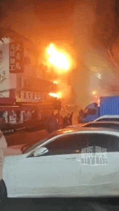 另有一段视频显示,疑似在餐厅建筑物的2楼阳台、顶楼处均有明火燃烧。