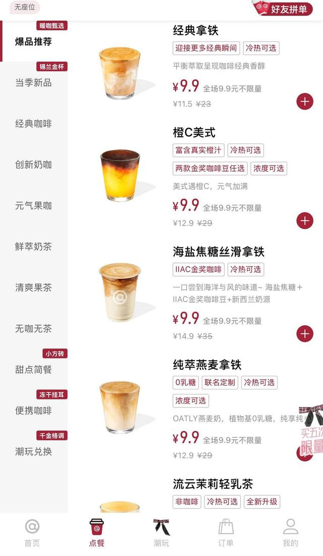 记者在库迪咖啡官方小程序上注意到,截至发稿前,其旗下多家门店仍然显示全场9.9元的优惠活动。