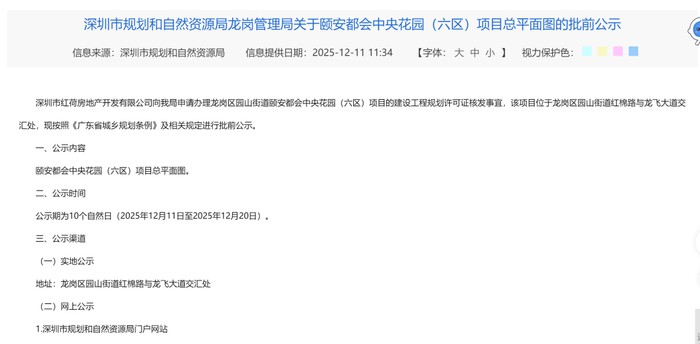早在2020年,颐安·都会中央六、七期商业综合体官宣全面启动及开工建设。去年12月,项目迎来了新消息,颐安都会中央花园(六区)项目获总平面图批前公示,深圳市红荷房地产开发有限公司向深圳市规划和自然资源局龙岗管理局申请办理龙岗区园山街道颐安都会中央花园(六区)项目的建设工程规划许可证核发事宜。