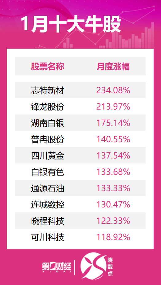 1月十大牛股出炉:志特新材逾234%涨幅问鼎榜首