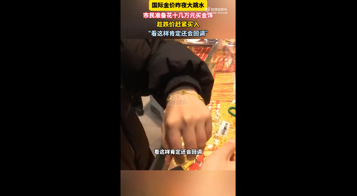在江西南昌,也有市民一大早赶到金店,准备花十几万元买金饰,“看黄金跌了一百多,赶紧来买,怕还要涨,能戴也能投资,有闲钱就买点,看这样肯定还会回调。”