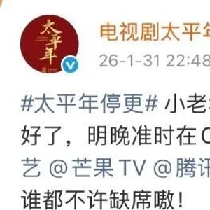 1月31日晚,“太平年停更” 登上微博热搜,随后 @电视剧太平年 发博回应:小老年顺着网线就来啦~~鱼脍热酒备好了,2月1日晚准时等着大家,说好了都不许缺席嗷。