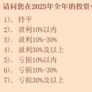 调查结果显示:38%的投资者准备加大资金投入,较2024年末增加了7个百分点;56%的投资者表示近期不准备大幅调整证券账户中的资产投入,较2024年末减少了3个百分点。在增加股市投入的投资者中:44%的资金来源于现金存款,在所有选项中排名第一;31%的资金来自赎回银行理财、货币基金、债券基金;7%的投资者表示将通过融资融券增加资金投入。