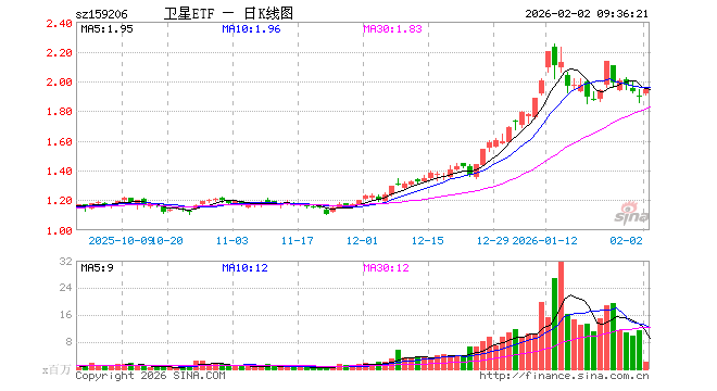 2月2日,卫星ETF(159206)开盘涨1.16%,报1.912元。卫星ETF(159206)重仓股方面,中国卫星开盘涨1.78%,航天电子涨1.01%,睿创微纳跌0.81%,信维通信涨3.82%,复旦微电涨0.47%,上海瀚讯涨0.36%,臻镭科技涨1.44%,海格通信涨0.74%,中国卫通涨0.79%,卓胜微跌0.61%。