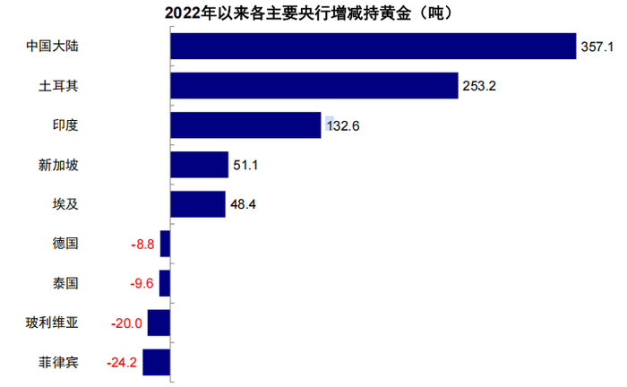 图表16:2022年以来中国、土耳其、印度等国家增持黄金储备最多