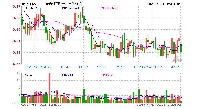 2月2日,养殖ETF(159865)开盘跌0.78%,报0.637元。养殖ETF(159865)重仓股方面,牧原股份开盘涨0.07%,海大集团涨0.08%,温氏股份跌0.45%,正邦科技跌3.03%,新希望跌3.54%,梅花生物跌0.54%,生物股份涨0.00%,大北农跌6.10%,圣农发展涨0.00%,立华股份跌1.64%。