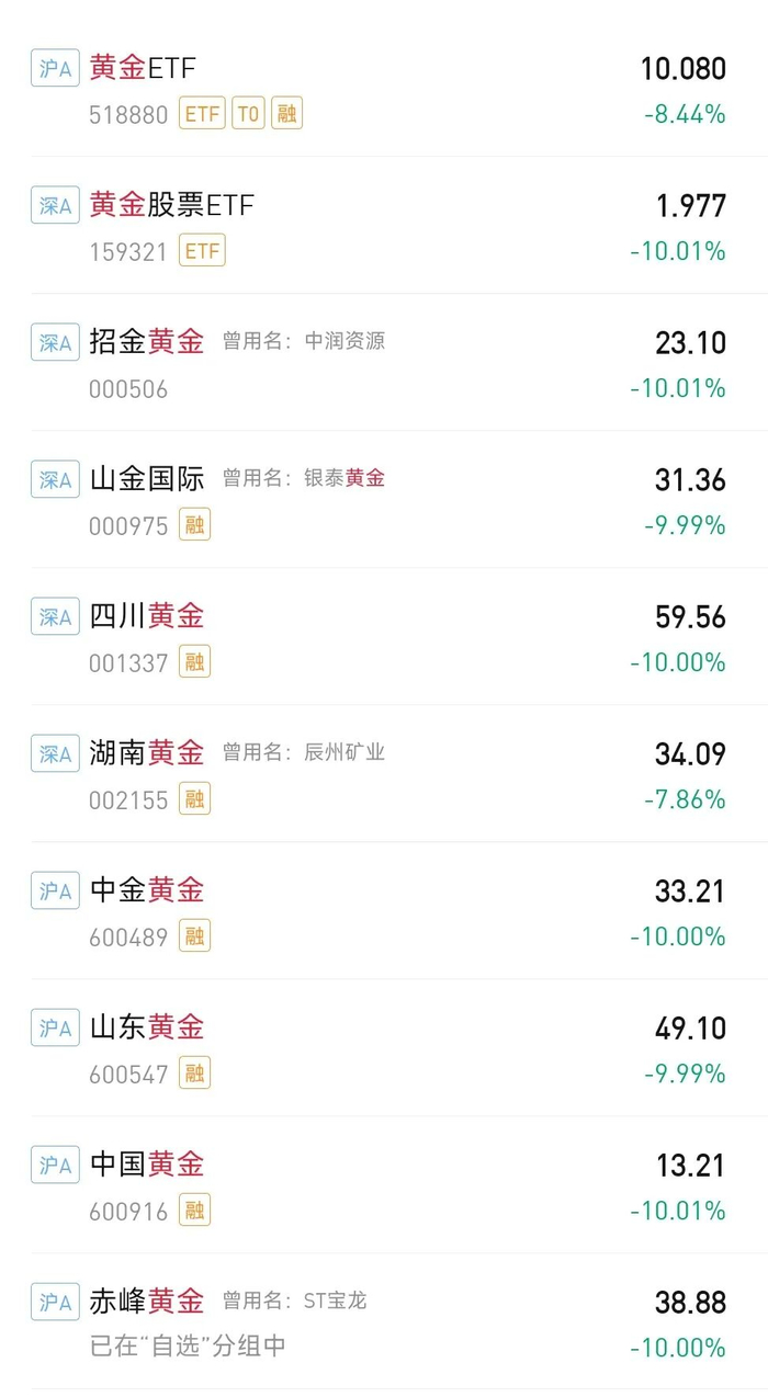 A股黄金板块全线跌停!周生生金饰克价一夜跌134元