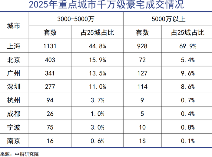 全国豪宅看上海,基于周边长三角地区高净值人群的聚集,对核心资产拥有强烈需求。2025年,上海每天都有近6套千万级豪宅成交,5000万元以上的房产,几乎被上海“垄断”,全国每10套成交,就有7套在魔都完成。