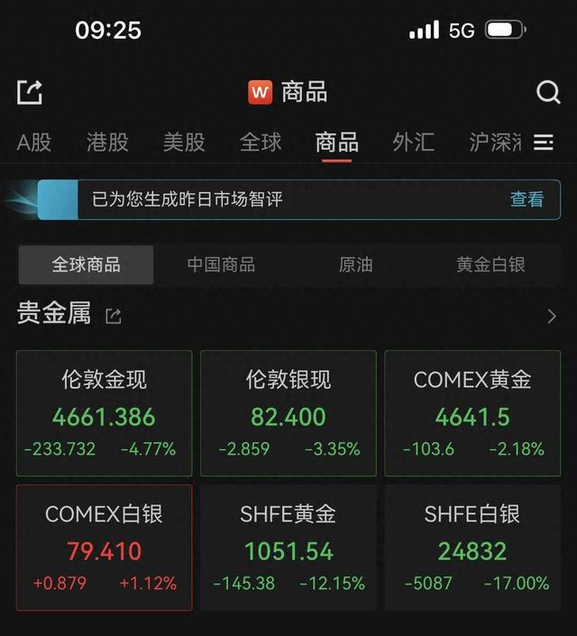 扬子晚报网2月2日讯(记者 范晓林)现货黄金开盘大跌,截至发稿日内跌幅扩大至5%,报4605.53美元/盎司。