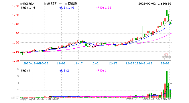 2月2日,截止午间收盘,石油ETF(561360)跌4.26%,报1.394元,成交额2.85亿元。石油ETF(561360)重仓股方面,中国石油截止午盘跌3.54%,中国海油跌4.39%,中国石化跌1.69%,杰瑞股份涨3.29%,招商轮船跌3.70%,广汇能源跌4.63%,中远海能跌3.80%,恒力石化跌7.43%,荣盛石化跌7.80%,洲际油气跌9.91%。