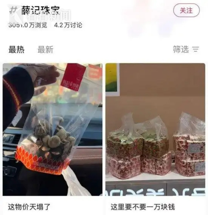 在社交媒体上,薛记炒货因其定价被网友戏称为“薛记珠宝店”“炒货界的爱马仕”“炒货刺客”等。