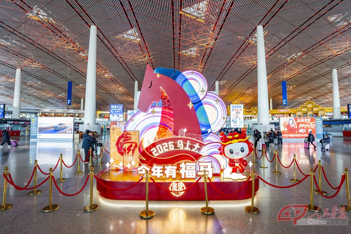 现在,走进首都机场航站楼,精心设置的新春景观让节日氛围扑面而来。其中,3号航站楼以“天马”主题呼应汉代“天马为龙使”的文化内涵,象征连接世界;2号航站楼塑造“日历新篇”景观,融入剪纸风格马年图案与北京剪影,寓意新年启程、时光焕新。首都机场还在车道边、值机区等区域张贴了马年主题窗花与装饰贴纸,向过往旅客传递温馨的新年问候。