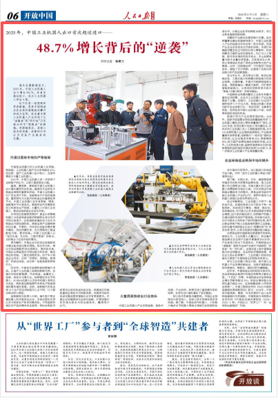 海关总署数据显示,2025年,中国工业机器人出口增长48.7%,并首次超过进口,成为工业机器人净出口国。