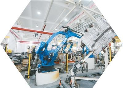 工业机器人在江苏省江都高新技术产业开发区一家汽车配件制造企业的智能生产线上作业。