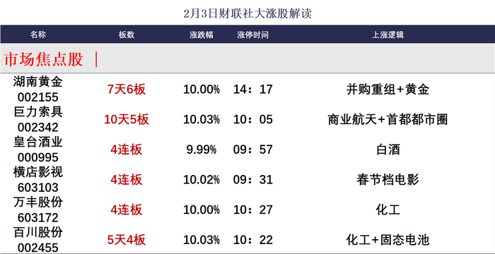 财联社2月3日讯,今日70股涨停,18股炸板,封板率为80%,皇台酒业、横店影视、万丰股份4连板,名雕股份、杭电股份3连板,民爆光电20cm2连板,浙文互联18天8板,湖南黄金7天6板,巨力索具10天5板,红宝丽11天5板,百川股份5天4板。市场探底回升,沪指、创业板指均涨超1%,深成指涨超2%。沪深两市成交额2.54万亿,较上一个交易日缩量405亿。盘面上,市场热点快速轮动,全市场超4800只个股上涨。板块方面,商业航天、光伏、AI应用、算力硬件方向领涨;下跌方面,油气、银行、煤炭等板块逆势下跌。截至收盘,沪指涨1.29%,深成指涨2.19%,创业板指涨1.86%。