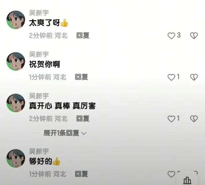 “祝贺你”“真开心”等言论: