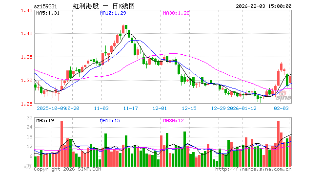 2月3日红利港股ETF国泰(159331)份额减少700.00万份,最新份额2.22亿份,最新规模2.92亿元
