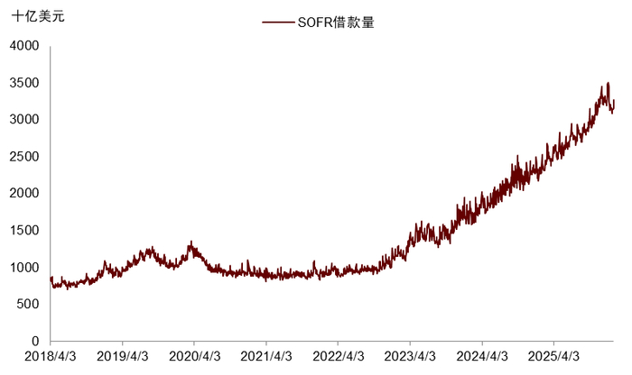真正使得当下美联储不得不常态化扩表的,是财政主导对货币政策的捆绑。如前所述,当前美国金融市场严重依赖回购融资,而美债又是回购市场的核心抵押品(图表3)。也就是说,如果财政发债无人承接,那么美债贬值将连带紧缩市场融资规模,并通过“抵押品乘数”(collateral multiplier)放大紧缩效果[7]。因此,财政扩张+充裕流动性体系+QT的组合存在天然矛盾,QT也最终多是通过引爆美债-回购市场的风险(潜在系统性风险)迫使美联储下场重新QE救市而收场。2019年9月的回购市场风险、2020年3月的美债市场风险、乃至去年4月对等关税问题,及之后美联储在QT政策上的迅速转向,已经屡次证明了这一结果。2024年以来我们持续提示,在面临国内贫富差距问题和全球地缘与科技竞争的当下,美国财政紧缩的可能性比较低,特别是今年面临中期选举压力,特朗普扩张财政的迫切性有增无减。