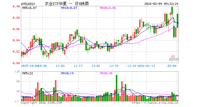 2月4日,农业ETF华夏(516810)开盘涨2.78%,报0.886元。农业ETF华夏(516810)重仓股方面,牧原股份开盘涨0.15%,温氏股份涨0.32%,海大集团涨0.23%,藏格矿业涨0.02%,盐湖股份涨1.59%,亚钾国际涨0.85%,正邦科技涨0.63%,新希望涨0.23%,梅花生物涨0.00%,扬农化工涨0.01%。