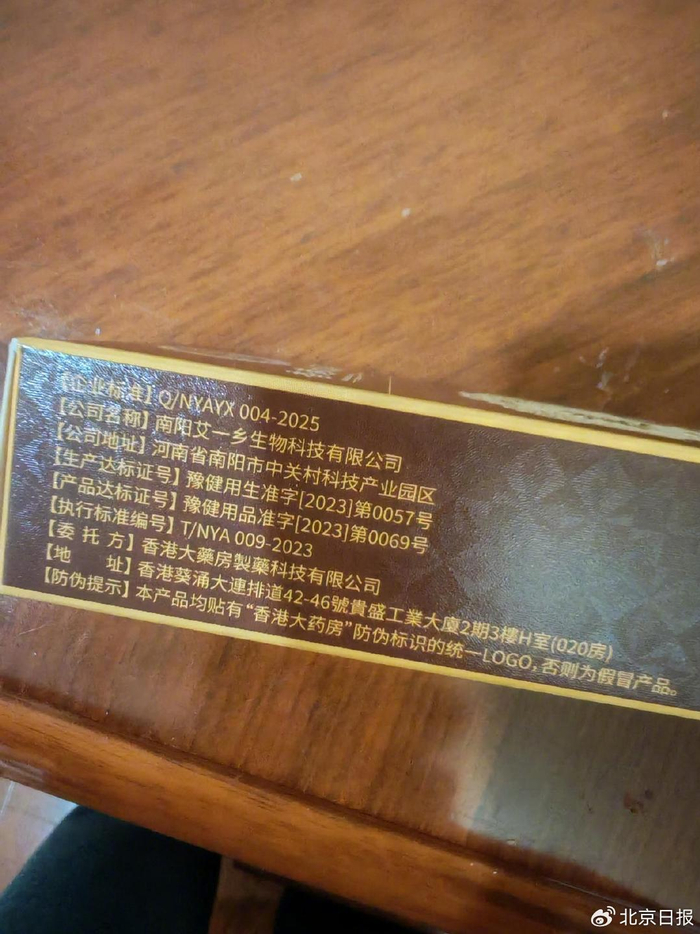 依据我国相关法律规定,具有治疗相关功能的产品,根据产品类型,需要标注国药准字批号或械字号相关编号。记者联系上河南南阳一家企业,一名工作人员表示,其公司为香港大药房代工的相关产品,本质上说并不是药品药物,而是“日常用品,居家常备的日用品”,只是用来居家保健和促进康复。