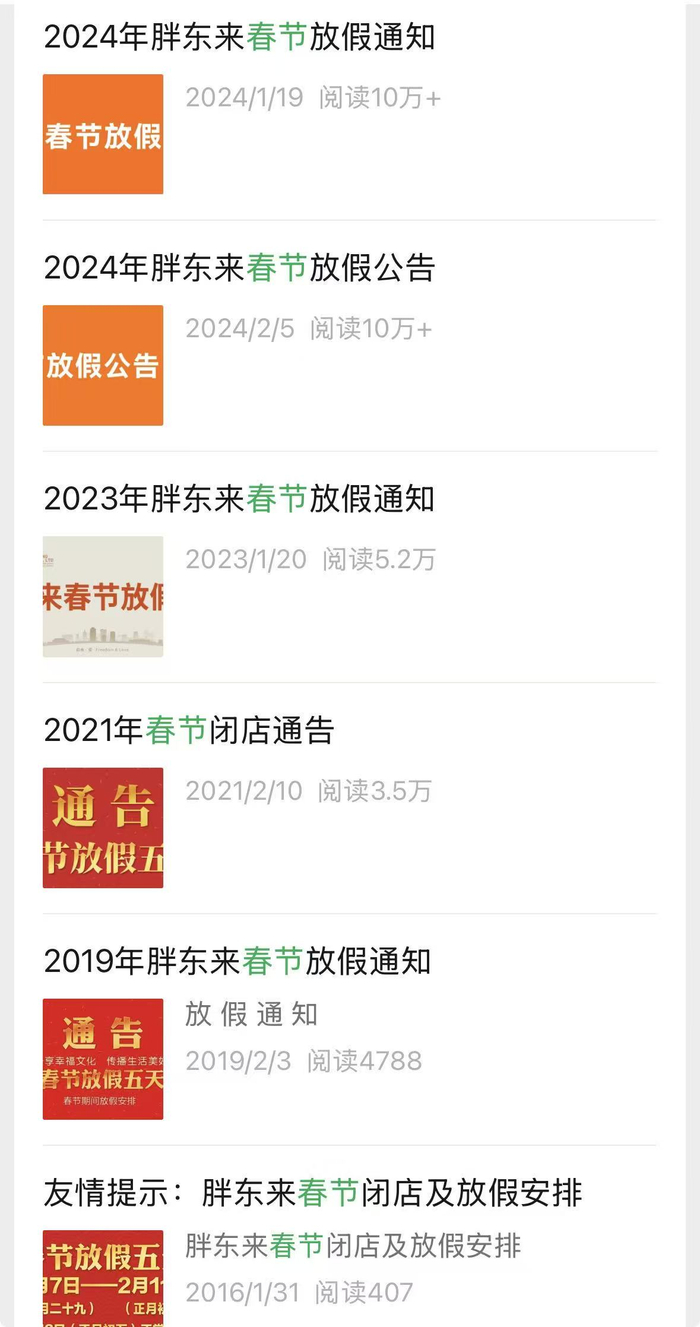中新经纬2月4日电 4日,胖东来发布春节放假公告。