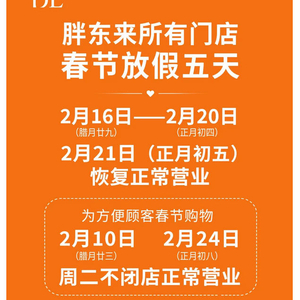 胖东来还称,为方便顾客春节购物,2月10日、2月24日两个原本闭店的周二,将正常营业。