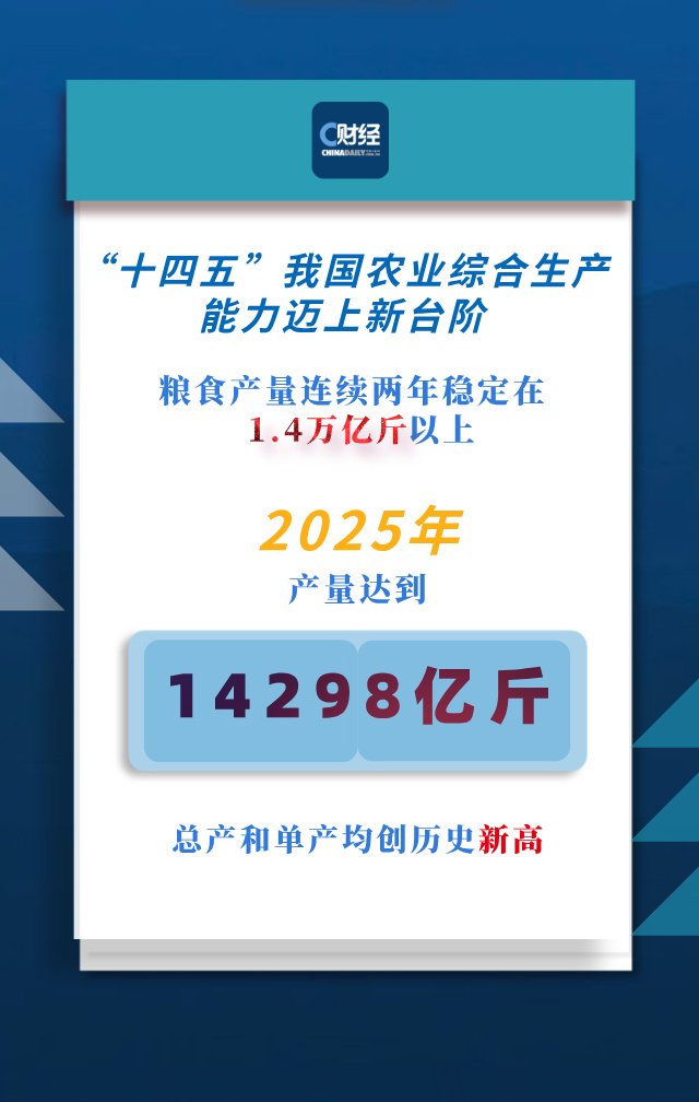 2025年我国粮食产量达1.43万亿斤,总产和单产均创历史新高