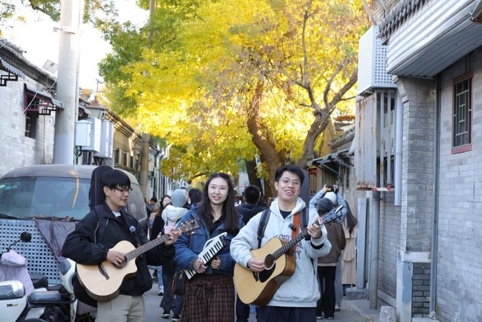 而在秋天的胡同里,阳光透过黄色银杏叶洒在地上,每个人回忆起那一刻,会觉得没有什么是不能放弃的,错过这样的秋天太可惜。他们在胡同里唱歌,身边有路人朋友,有能产生共鸣的人,那种奇妙、有趣又浪漫的感觉令人难忘。在寒冬即将过去春节将至的时刻,他们在颐和园的冰场上收获了更多的关注和点赞,这一刻更加让他们觉得“这条路走对了!”