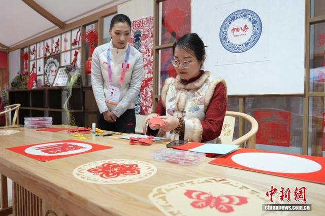 当地时间2月4日,适逢“立春”,米兰冬奥会“中国之家”在意大利米兰克莱里西庄园正式敞开大门。图为非遗传承人在非遗体验区展示剪纸。 中新社记者 蒋启明 摄