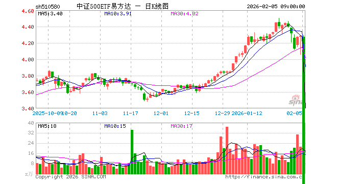 2月4日中证500ETF易方达(510580)份额减少80.00万份,最新份额8.93亿份,最新规模38.21亿元