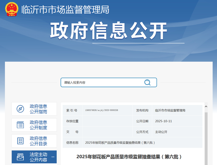 山东省临沂市市场监督管理局公布2025年刨花板产品质量市级监督抽查结果(第六批)