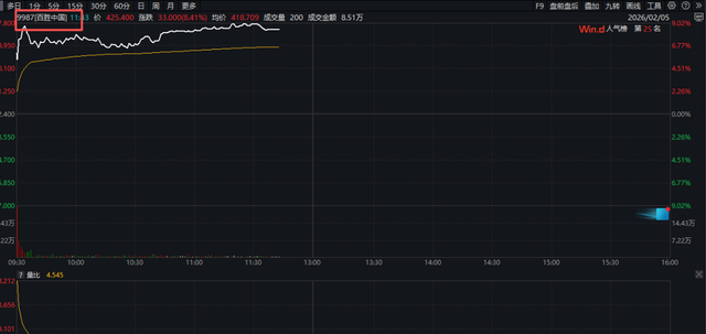 新股北芯生命盘中一度大涨超过210%