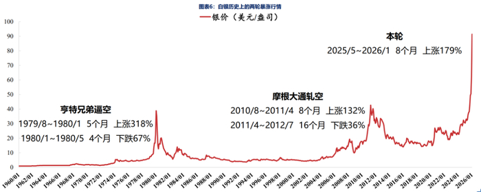 这不仅仅是数字的跳升,更是市场结构脆弱性的极端体现。研报指出,白银波动率的极端高位通常难以维持,而“降波”(波动率回归)的过程,历史上绝大多数时候都伴随着价格的剧烈调整。当市场从有序上涨变成无序的赌场,崩盘往往紧随其后。