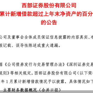 西部证券:当年累计新增借款超上年末净资产的20%
