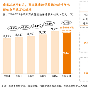 金融监管总局数据显示,2025年商业健康险保费为9973亿元,同比增幅为2.04%。