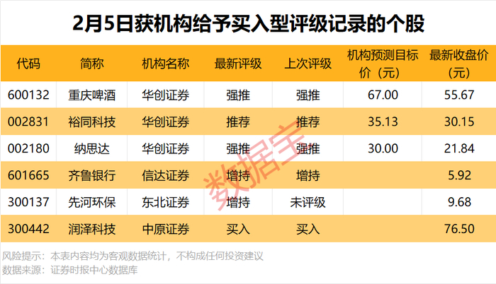 业绩方面,机构评级买入个股中,齐鲁银行、重庆啤酒已经公布了2025年度业绩快报,净利润增幅分别为14.58%、10.43%。