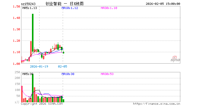 2月5日创业板人工智能ETF招商(159243)份额增加300.00万份,最新份额2.24亿份,最新规模2.44亿元