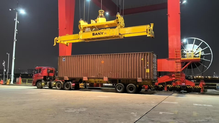 21时20分,车辆到达目的地——长沙港,此时港内灯火通明,集卡来回穿梭,一派繁忙景象。因为港口烟花爆竹集装箱堆场作业安全要求,记者就此与师傅们告别。