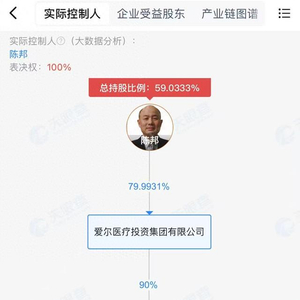 湖南爱尔健康产业发展有限公司则由爱尔医疗投资集团有限公司持股90%,其公司董事长为张跃文、董事为李力、陈邦。同时,爱尔医疗投资集团有限公司系A股上市公司爱尔眼科的控股股东。据爱尔眼科2025年半年报,陈邦是上市公司实际控制人,持有爱尔投资79.99%的股份。
