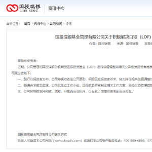 国投瑞银基金发布声明:已成立工作组 积极解决白银LOF基金投资者诉求