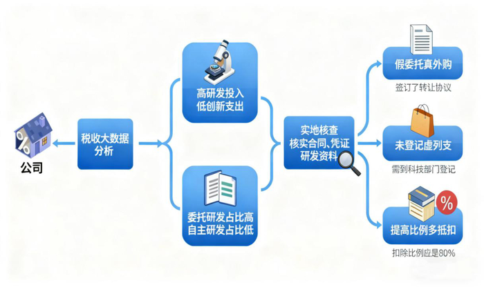 前期,国家税务总局拉萨市税务局稽查局通过税收大数据分析,发现西藏慧业连续四年研发费用支出占企业总成本费用的80%以上,但其申报的研发成果极少。“委托研发费用”占比远超企业自主研发费用占比,研发费用构成严重失衡。这种高研发投入与低创新产出的严重不匹配,存在明显异常。