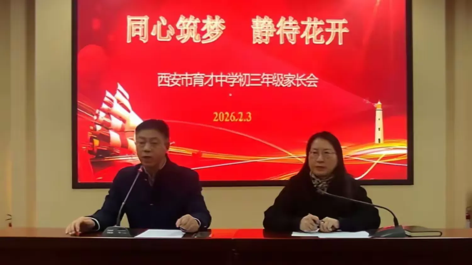 阳光讯(记者杨小娟 通讯员高霞)岁序更替,华章日新。随着期末考试落下帷幕,初三第一学期圆满结束,农历新年的脚步也悄然临近。为系统总结过往、清晰规划未来,进一步凝聚家校育人共识,西安市育才中学初三年级于2月3日举行以“同心筑梦 静待花开”为主题,召开期末家长会活动。