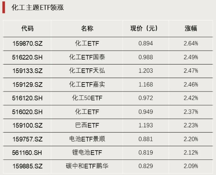 化工主题ETF领涨