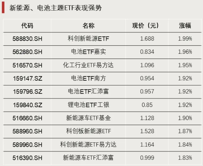 新能源、电池主题ETF表现强势