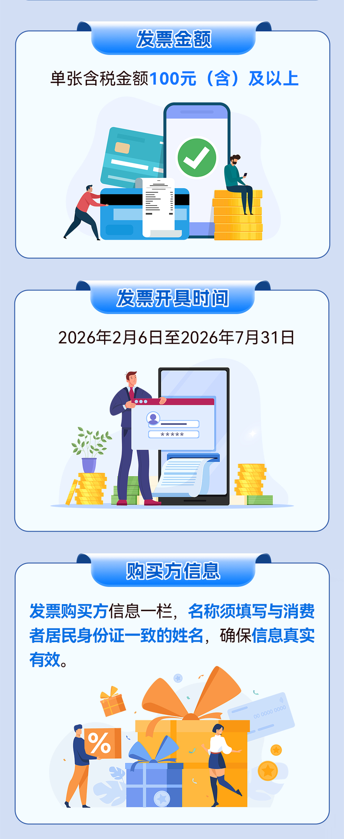 为保障试点工作安全有序,宁波已建立“事前预防、事中管控、事后处置”全流程风险防控体系:事前严格把控消费者参与资格,完成实名认证;事中开展发票验真核验,对异常行为实时监测;事后对恶意虚开发票、套取奖金等违法违规行为,取消参与资格,追回奖励,情节严重的,依法追究责任。