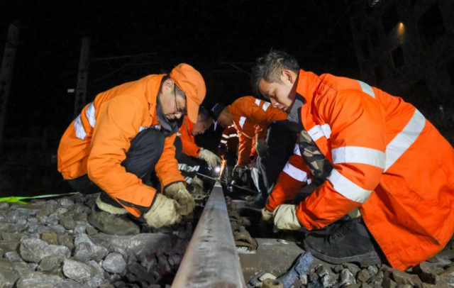 2月5日19时30分,在沪昆铁路江西萍乡区段的K1027+400m处,国铁南昌局萍乡工务段萍乡线路车间的25名干部职工正利用120分钟的“故障修”天窗时间更换伤损钢轨,提升线路设备质量,保障春运期间列车安全运行。