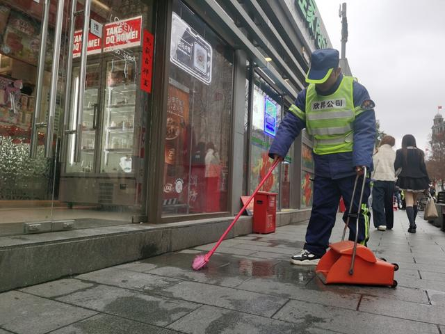 黄浦城发集团欣昇公司外滩滨水区保洁班清道员宫良彬说,现在常用的防滑垫主要有三种,但具体用哪种要看铺在哪里。铺什么垫子有讲究,用什么工具也要因地制宜。比如大理石地板,容易积水后结冰,要按照除冰、撒工业盐、铺麻袋的工序来处置。木地板更容易积雪,多数时候先用推雪板铲一遍,再除冰、撒工业盐、铺麻袋。宫良彬在外滩滨水区保洁班做了十几年,这些经验在过去的寒潮天气久经考验,大幅提升了工作效率。